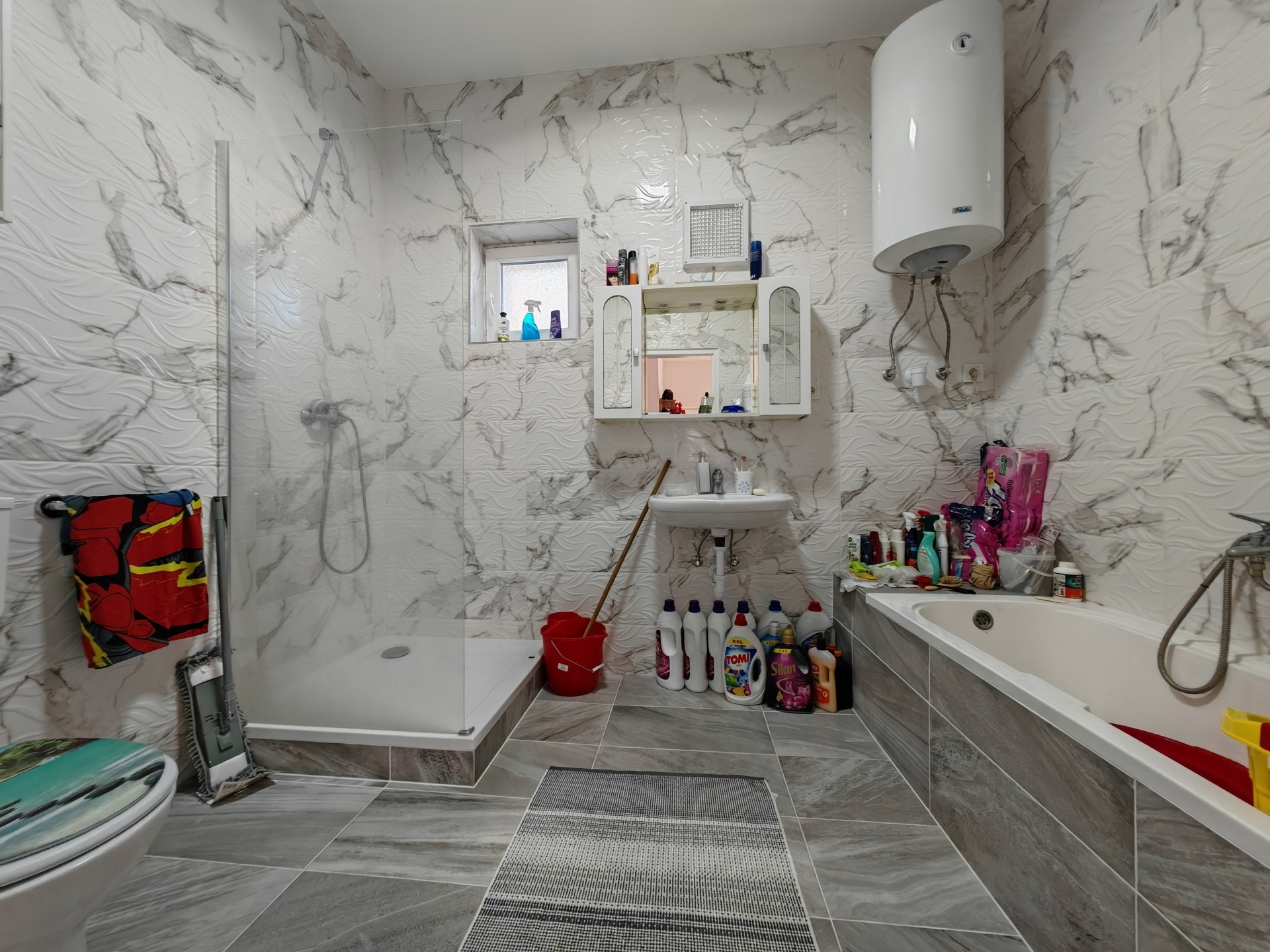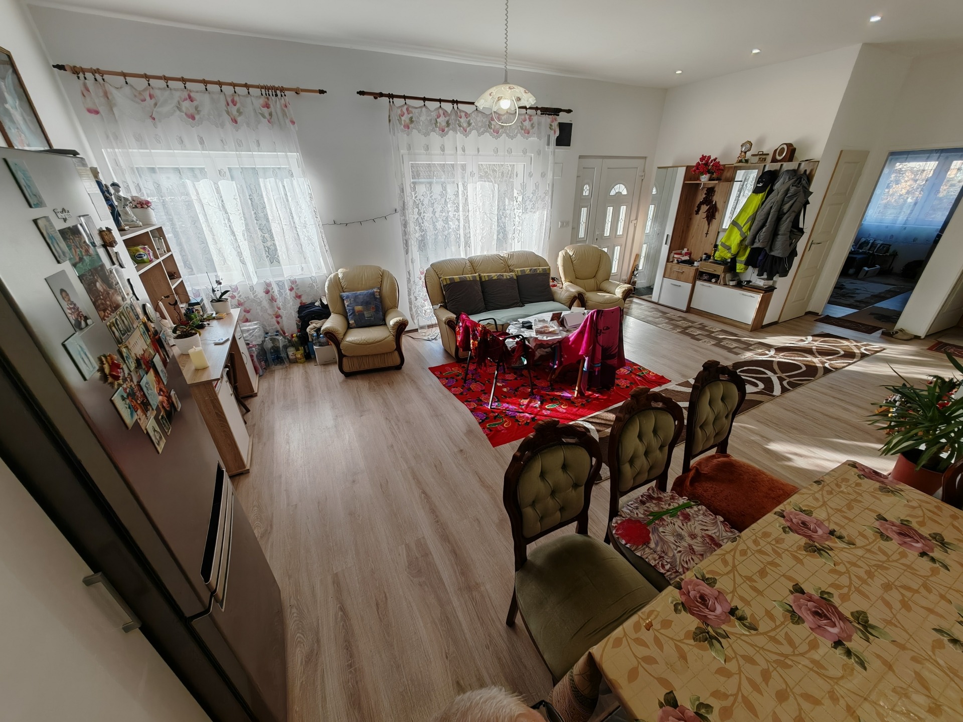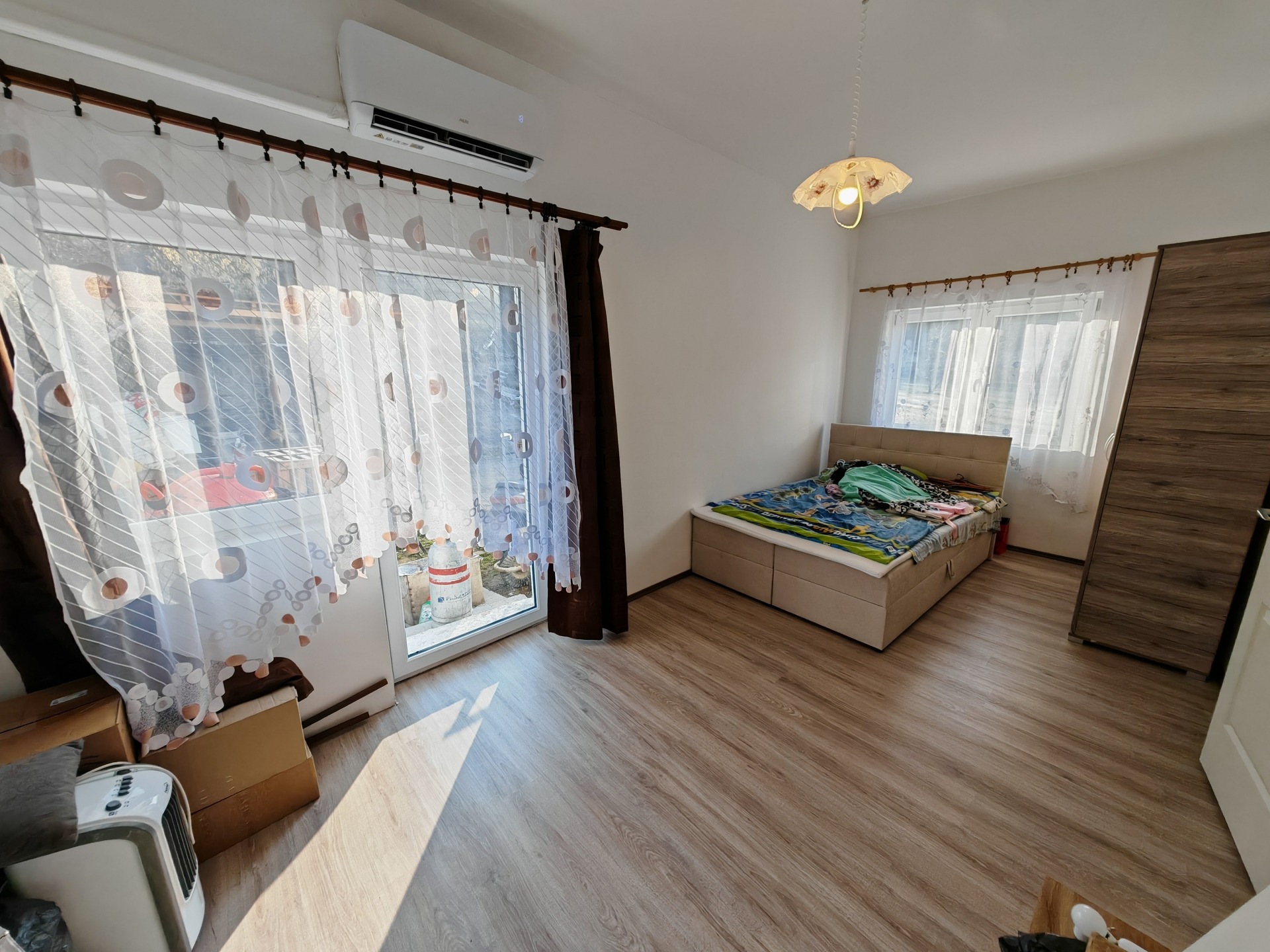 Az ingatlan elosztása átgondolt és praktikus: a tágas, napfényes amerikai konyhás nappaliból csillagszerűen nyílnak a hálószobák és a vizesblokkok, így biztosítva a család minden tagjának a magánszférát. A fürdőszoba igazi komfortzóna, ahol a modern kád mellett egy külön zuhanyzó is helyet kapott. A reggeli készülődés kényelmét a fürdőtől különálló, plusz mellékhelyiség teszi teljessé.