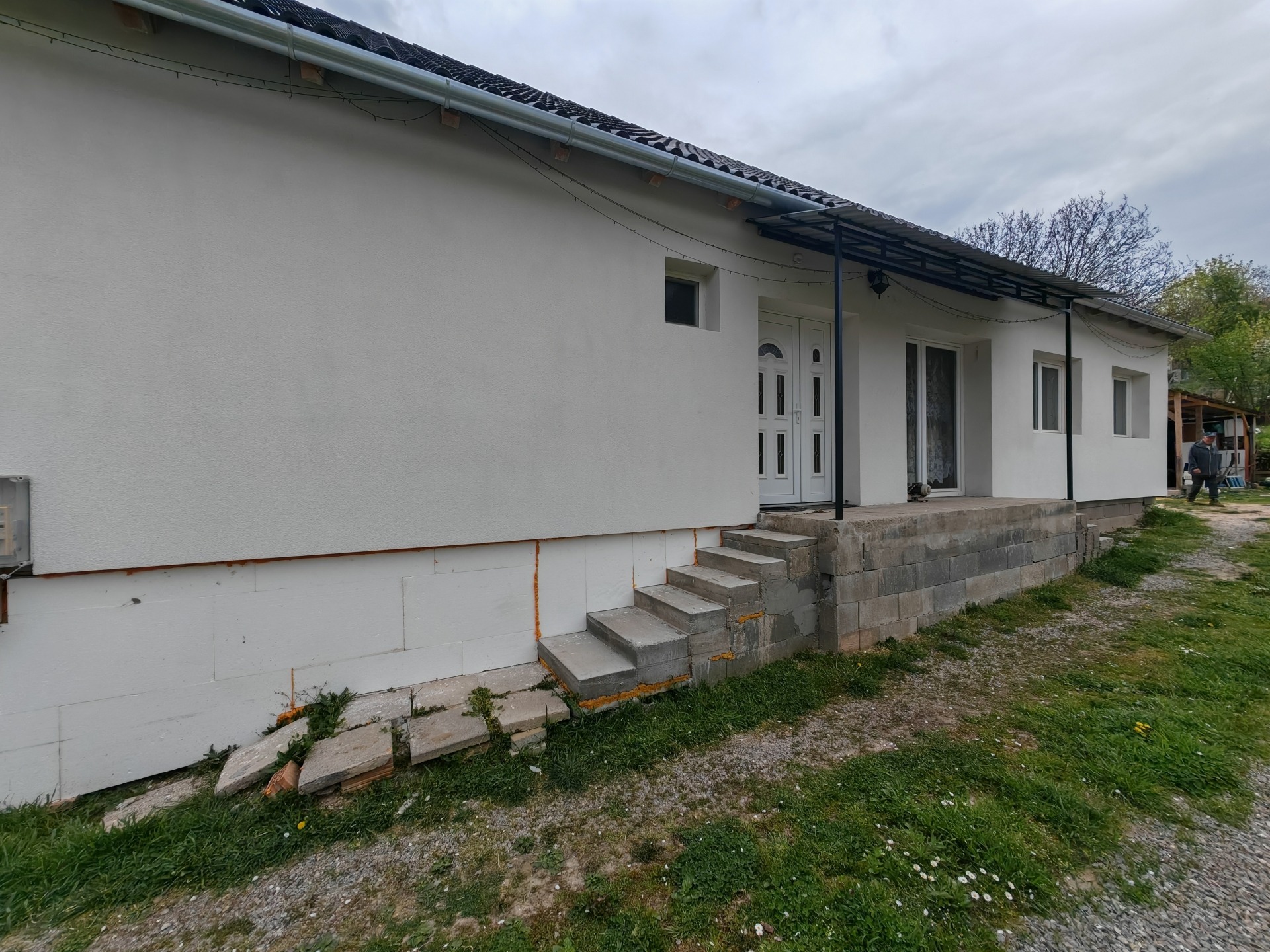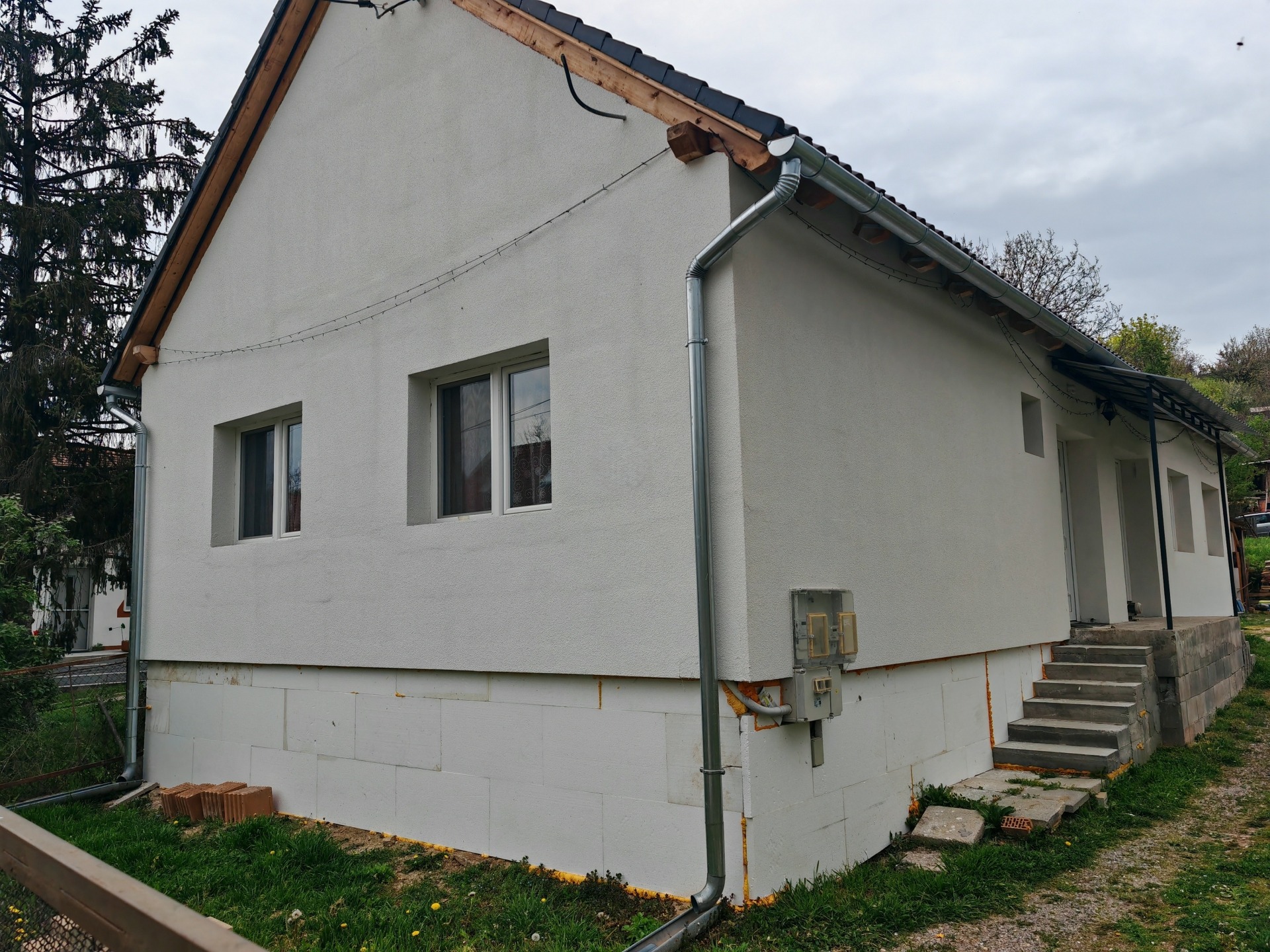A ház és a telek jelenleg kb. 96%-os készültségi szinten van. A külső színezés és a kisebb tereprendezési munkálatok az új tulajdonos igényei szerint könnyen befejezhetők.